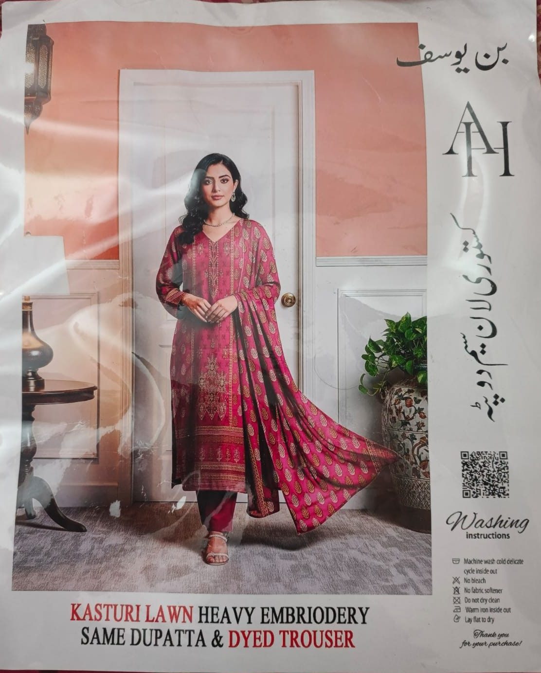 Kasturi Lawn Heavy Embroidered 3-Piece Suit – Deep Pink